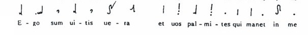 Za sprawą Guido z Arezzo (ok. 1030 roku) zaczęto neumy zapisywać na dwóch liniach: czerwonej dla dźwięku F i żółtej dla dźwięku C. Później dodawano kolejne linie, dzięki czemu umieszczane na liniach neumy precyzyjnie pokazywały odległości między dźwiękami. W ten sposób powstała notacja diastematyczna: Pod koniec XII wieku wykształciła się nota quadrata, używana obecnie do zapisu śpiewów chorałowych.